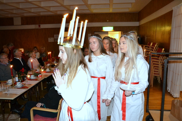 Måndagen den 28 november kunde ordf Rune Bennarsten hälsa välkommen till ännu en julavslutning. Ett av inslagen under kvällen var att lyssna till luciasångerna som sjöngs av Luciatåget från Funkaboskolan.