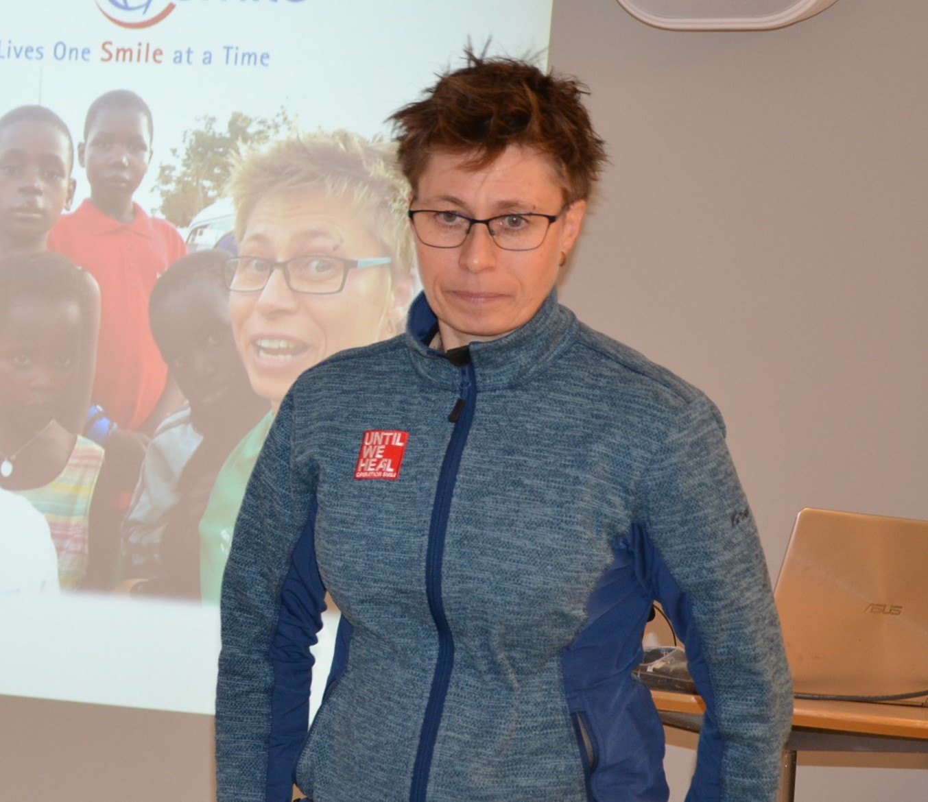 Ordf kunde hälsa Sjuksköterskan Andrea Berg välkommen, som berättade om sitt volontärs arbete inom den Internationella organisationen Operation Smile.